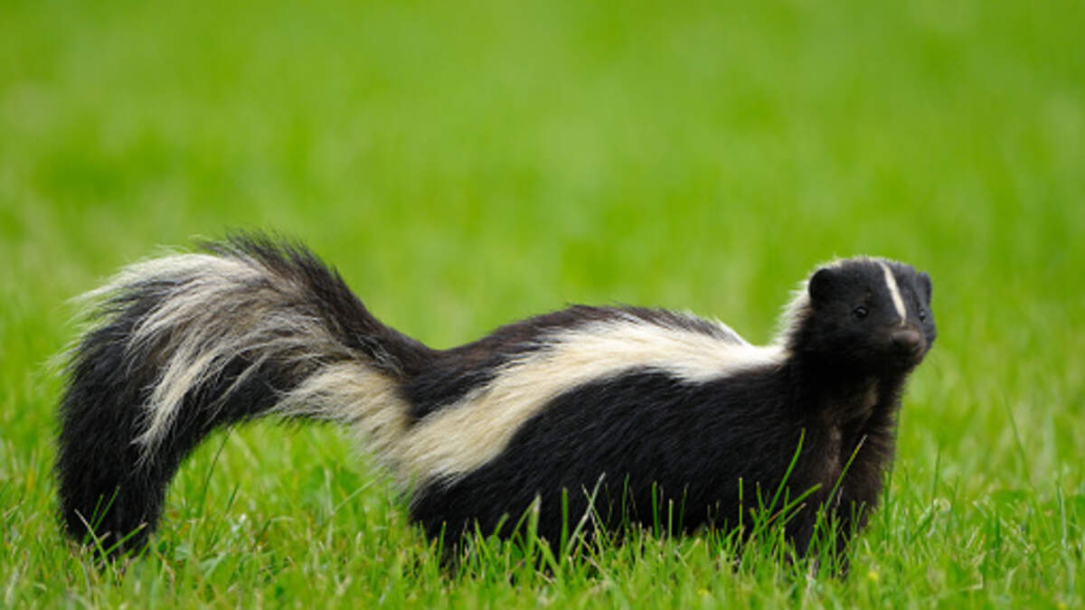 These black and white striped skunks are most iconic for their unique, defensive odor. According to the Maryland Department of Natural Resources, the females aren’t always receptive of their suitors and will spray them.